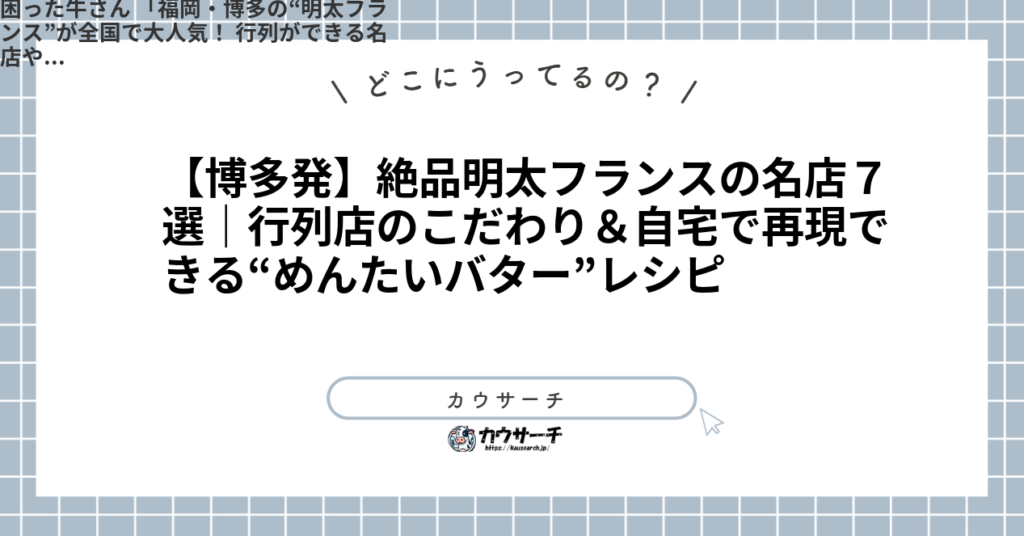 【博多発】絶品明太フランスの名店7選|行列店のこだわり&自宅で再現できる“めんたいバター”レシピ