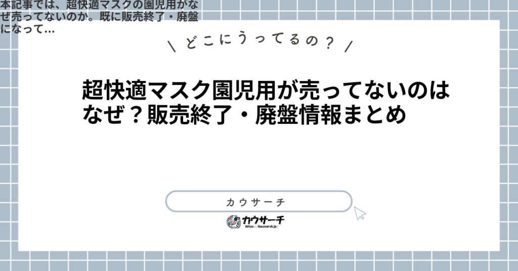 本記事では、超快適マスクの園児用がなぜ売ってないのか。既に販売終了・廃盤にな... -