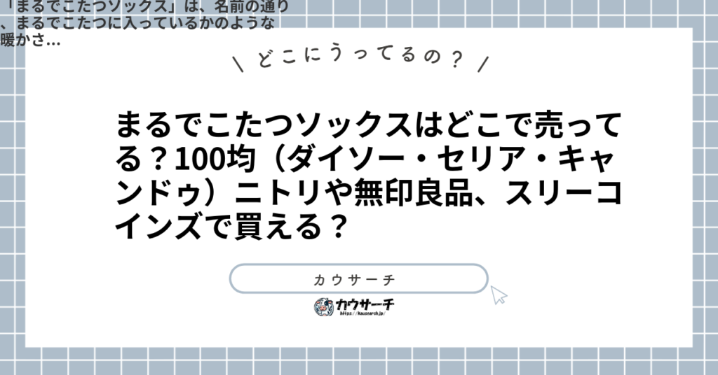 まるでこたつソックスはどこで売ってる?100均(ダイソー・セリア・キャンドゥ)ニトリや無印良品、スリーコインズで買える?