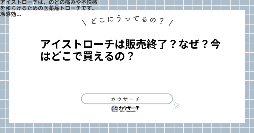 アイストローチは、のどの痛みや不快感を和らげるための医薬品トローチです。 冷感...