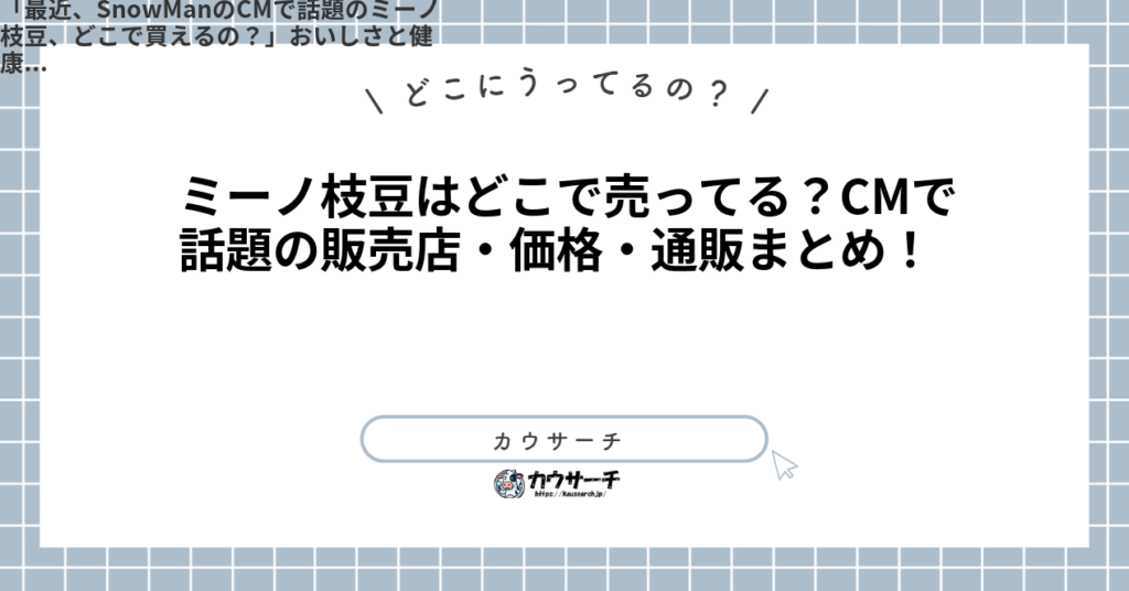 「最近、SnowManのCMで話題のミーノ枝豆、どこで買えるの?」おいしさと健康志向を...