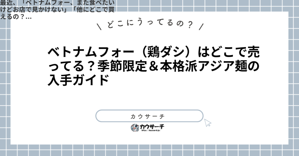 ベトナムフォー(鶏ダシ)はどこで売ってる?季節限定&本格派アジア麺の入手ガイド